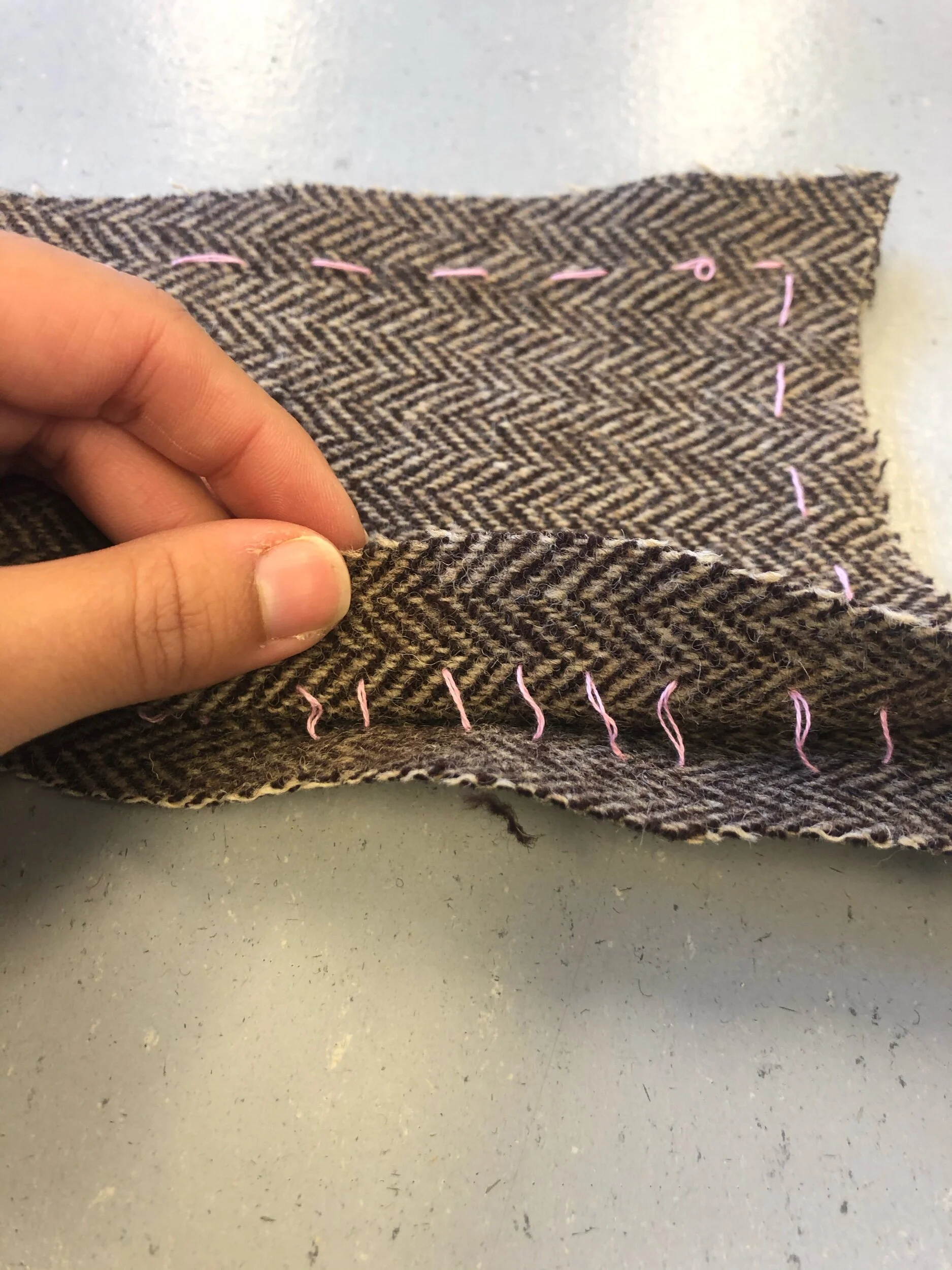 This jacket was made from a harris tweed wool with a herringbone pattern. It was made between October 2020 and January 2021. The new techniques learned were the whole interfacing of the jacket with horsehair ,bound buttonholes with a matching pattern , setting a lapel collar with hand sewing. The whole jacket was also sewed while keeping the pattern in mind ( the stripes).